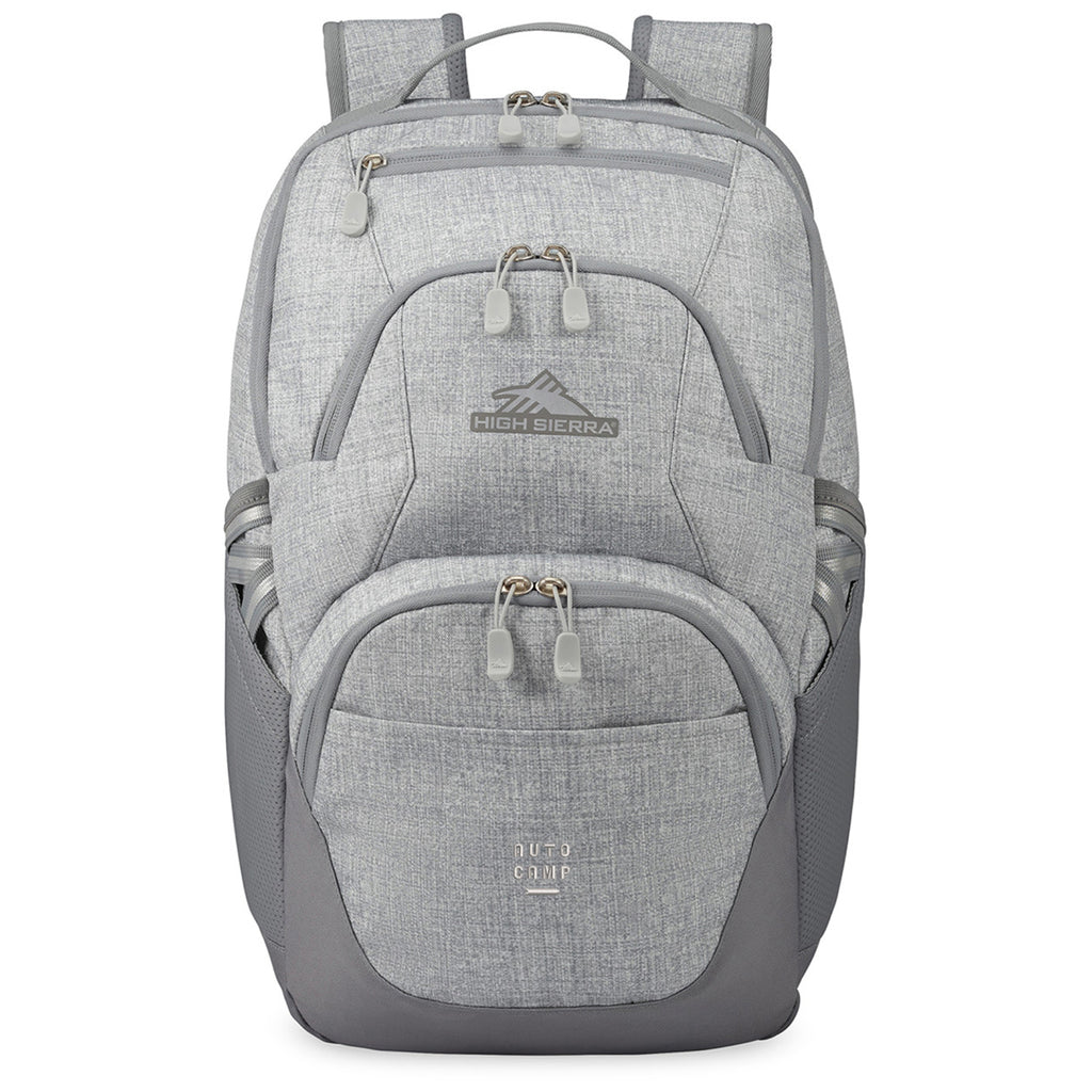 High Sierra Silver Heather Swoop SG Laptop Backpack with a custom logo is perfect for travel, school, or work with a padded laptop pocket that fits up to a 17" laptop and a separate tablet sleeve. A separate fleece lined pocket is great for sunglasses and phones to help you stay organized.
