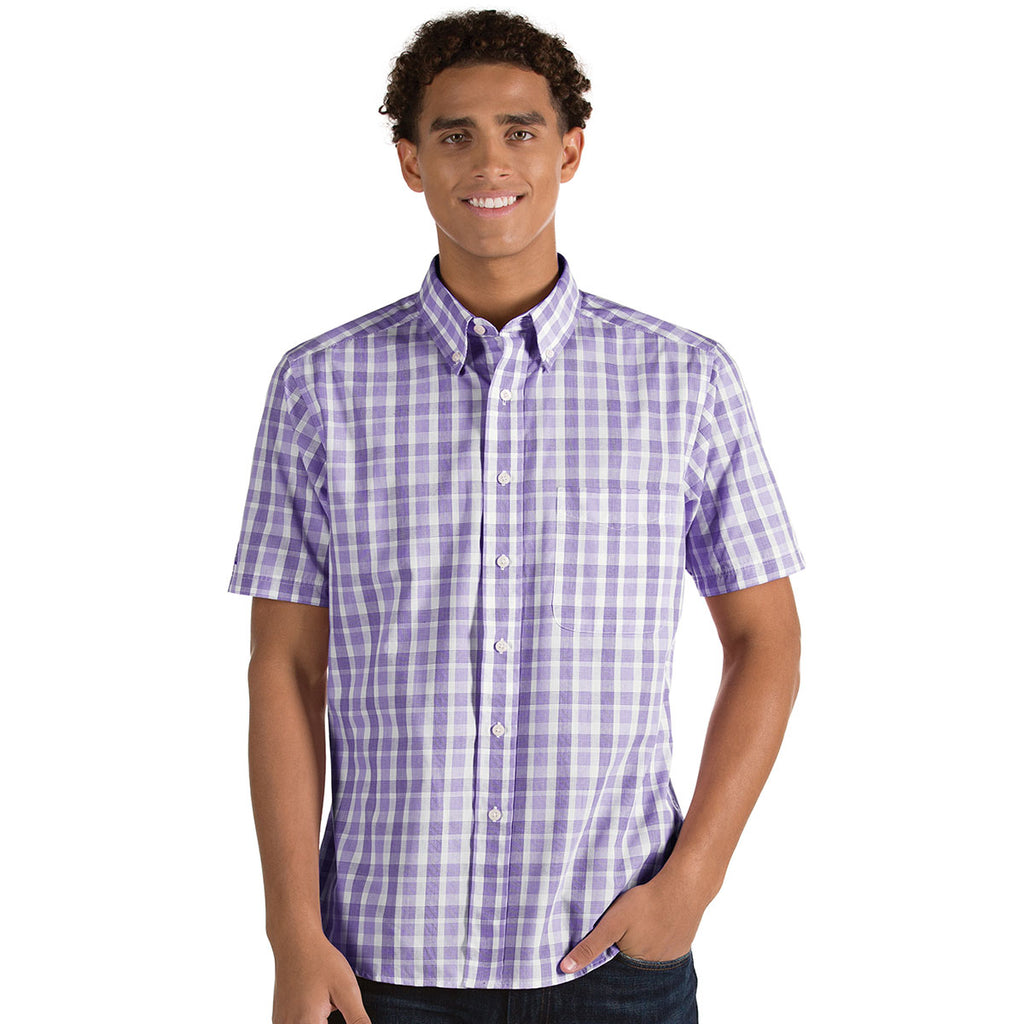 Classic design with a bit of flair is found in the Antigua Men's Dark Purple/White Crew with plaid color options. Made of a cotton, polyester blend the button down collar and tail bottom allows for the professional or laid back look to be accomplished with a single garment. Add a custom logo or corporate embroidery to use this button down as a part of employee apparel or keep your chosen employees and yourself looking top-notch at the next trade show. Offering a professional look that can be dressed up or down, the open cuffs and self fabric chest pocket are the small details that make a real difference. Place your order today!Highlights