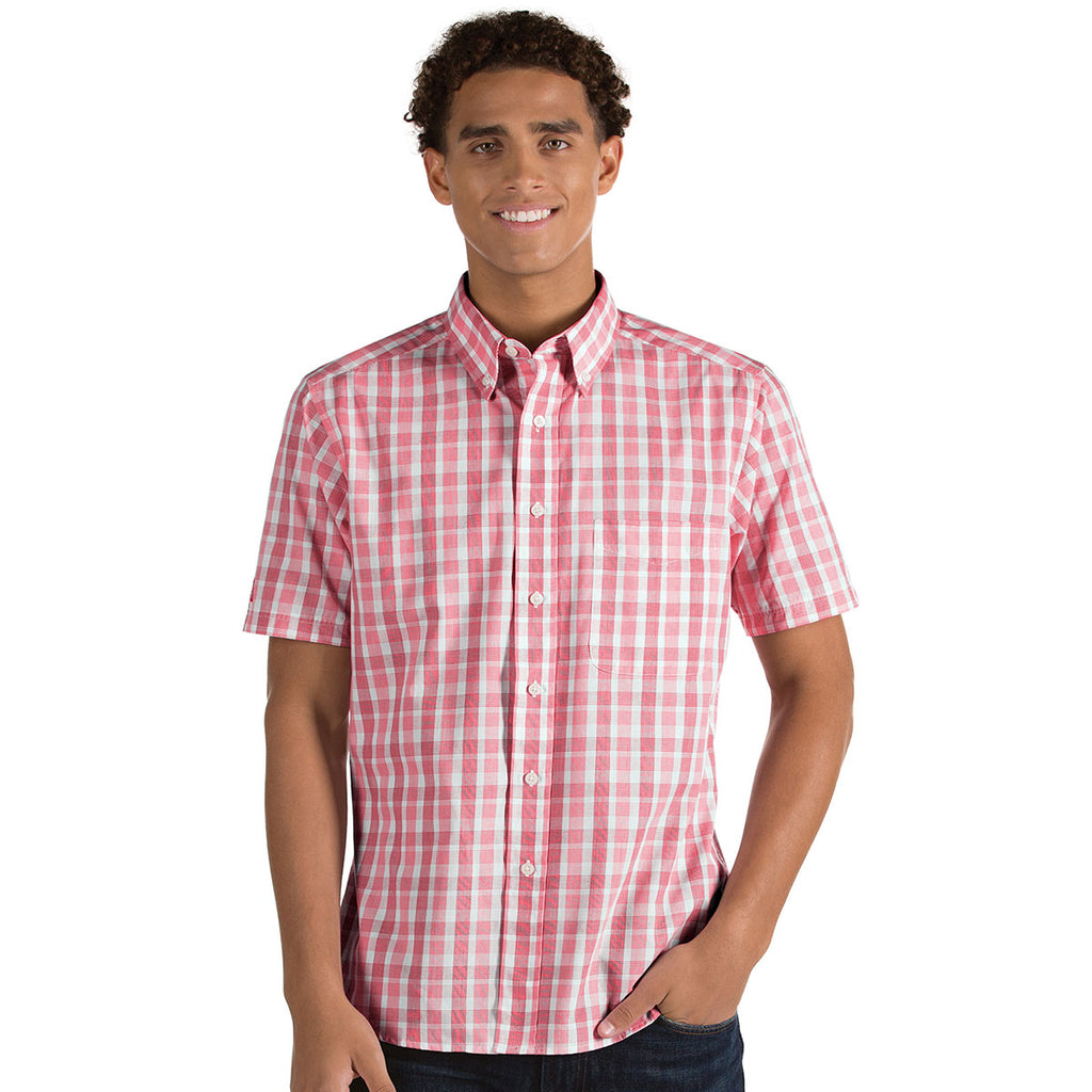 Classic design with a bit of flair is found in the Antigua Men's Cardinal Red/Silver/White Crew with plaid color options. Made of a cotton, polyester blend the button down collar and tail bottom allows for the professional or laid back look to be accomplished with a single garment. Add a custom logo or corporate embroidery to use this button down as a part of employee apparel or keep your chosen employees and yourself looking top-notch at the next trade show. Offering a professional look that can be dressed up or down, the open cuffs and self fabric chest pocket are the small details that make a real difference. Place your order today!Highlights