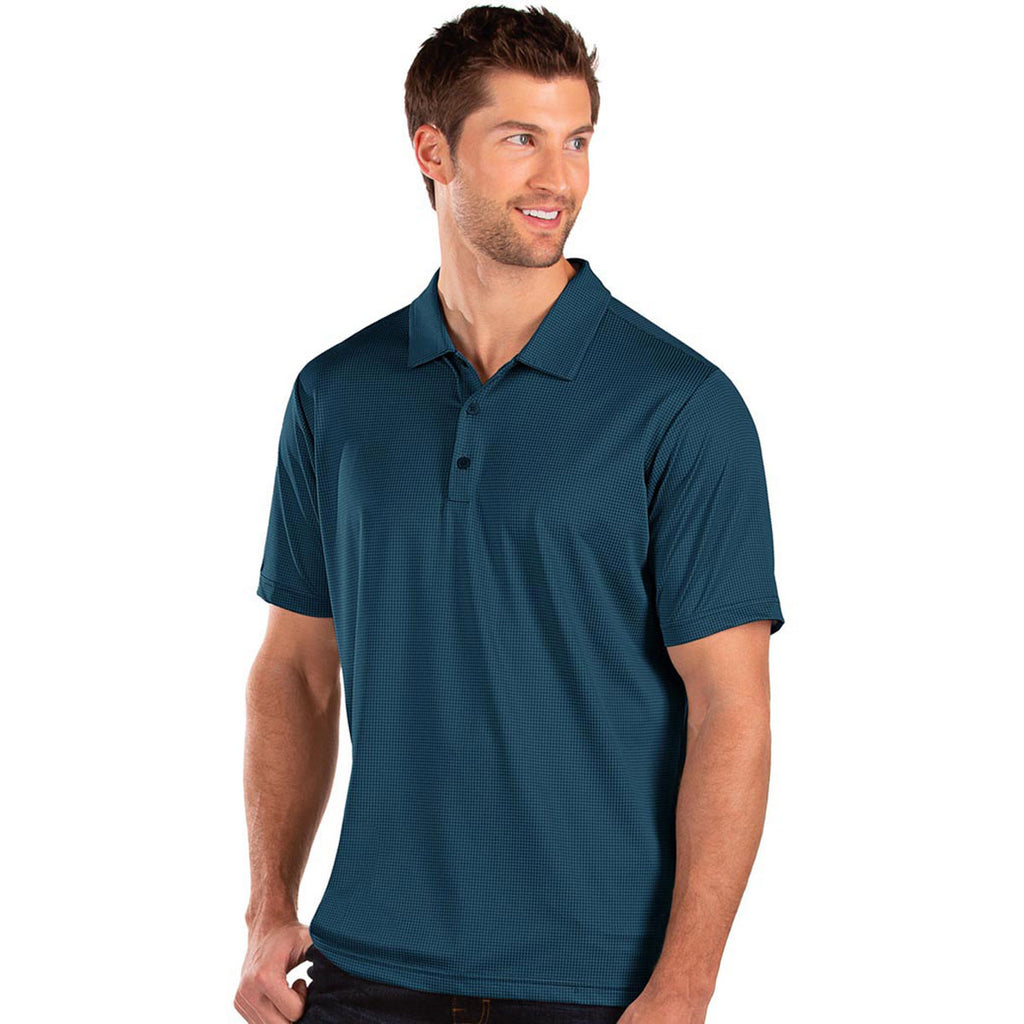 Add embroidery to the Antigua Men's Navy Multi Balance Short Sleeve Polo Shirt to enjoy a unique look at golf events or executive golf meetings. The polyester spandex blend has a bit of stretch so your swing will not be interrupted and the gingham pattern jacquard design with Desert Dry keeps you looking your best. Add a company logo to use as employee apparel or corporate wear as needed. The short sleeve polo looks just as amazing on the back nine as in the mailroom or on the sales floor. Place an order today to make sure these polos are ready as soon as possible.Corresponding Women's Style:Antigua Women's Navy Multi Balance Short Sleeve Polo Shirt