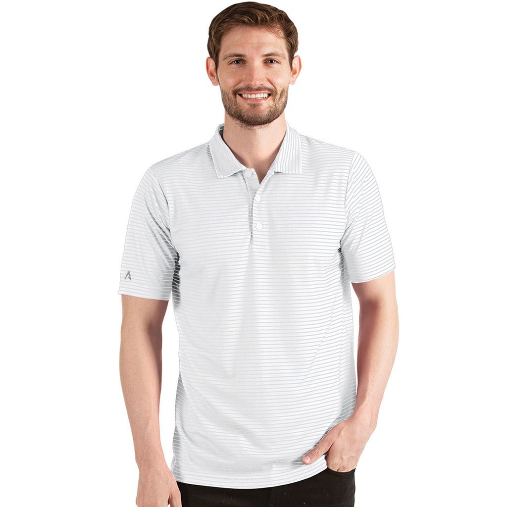 The custom logo Antigua Men's White/Silver Esteem Polo is a must-have item for your promotional product giveaway inventory. Add your embroidery company logo to the polo and hand it out at upcoming golf events and trade shows.Highlights