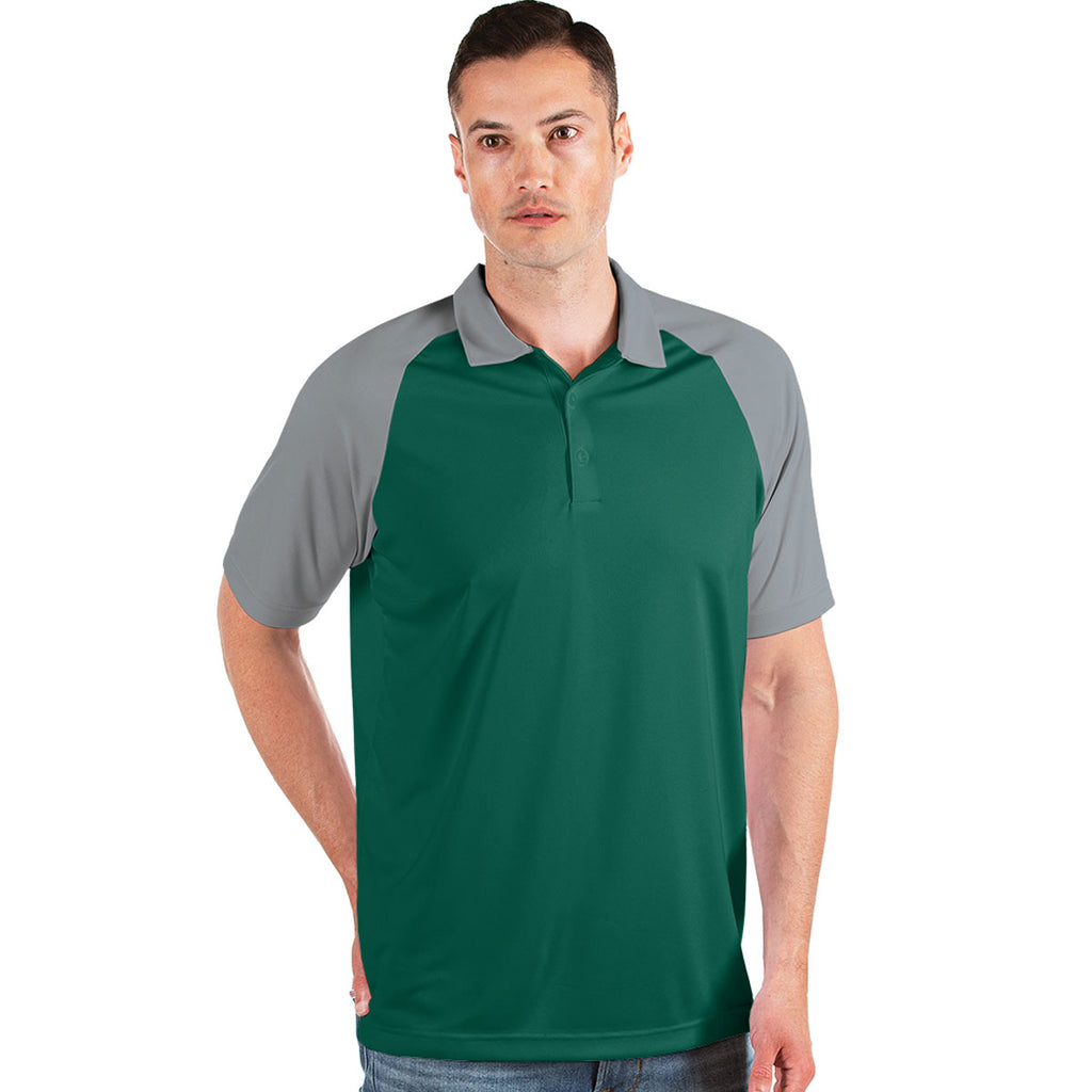The custom Antigua Men's Evergreen/Steel Nova Polo is style and comfort in one must-have shirt. Add your embroidery company logo to the polo and show off your brand name. This top makes an excellent corporate event gift for your upcoming trade shows.Highlights