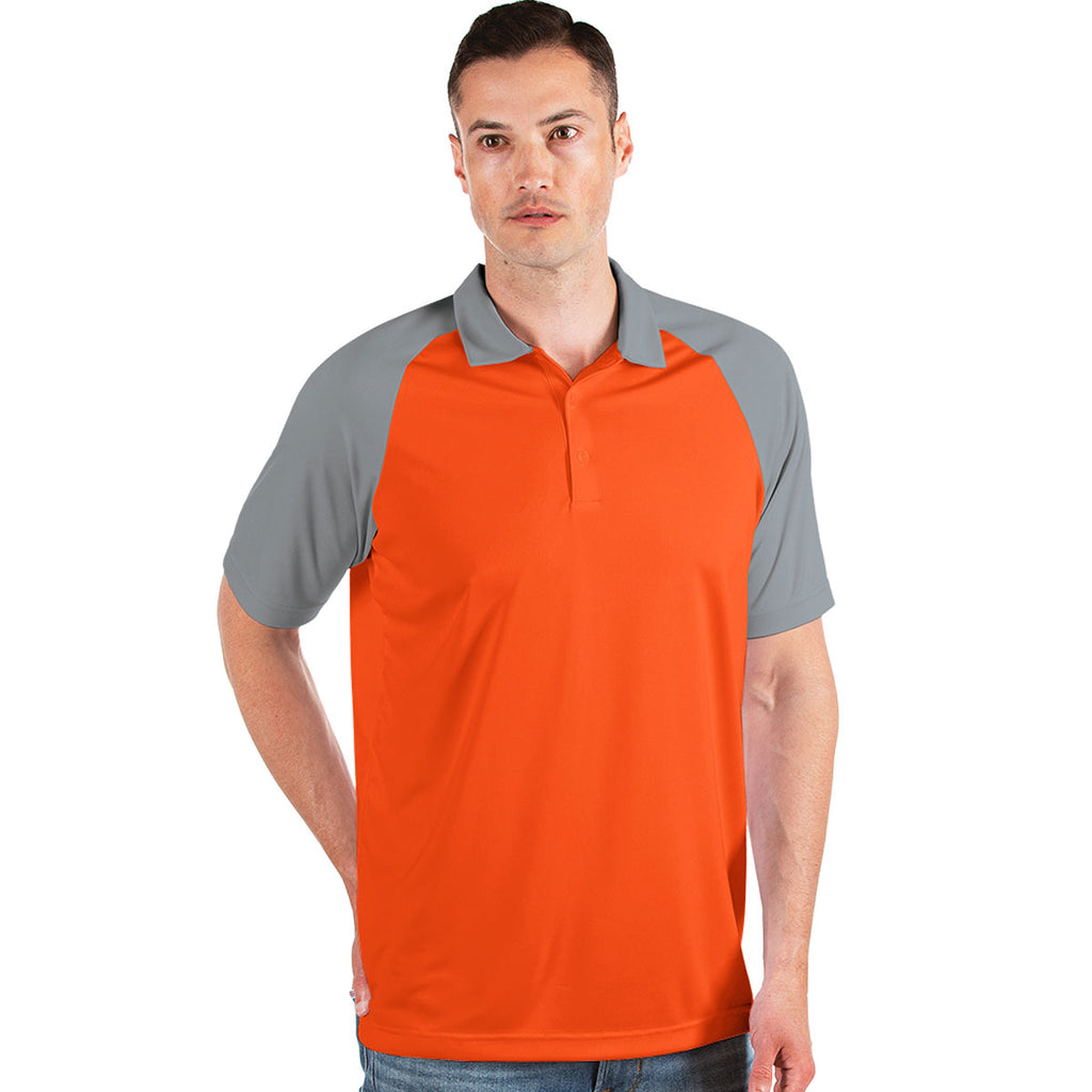 The custom Antigua Men's Mango/Steel Nova Polo is style and comfort in one must-have shirt. Add your embroidery company logo to the polo and show off your brand name. This top makes an excellent corporate event gift for your upcoming trade shows.Highlights