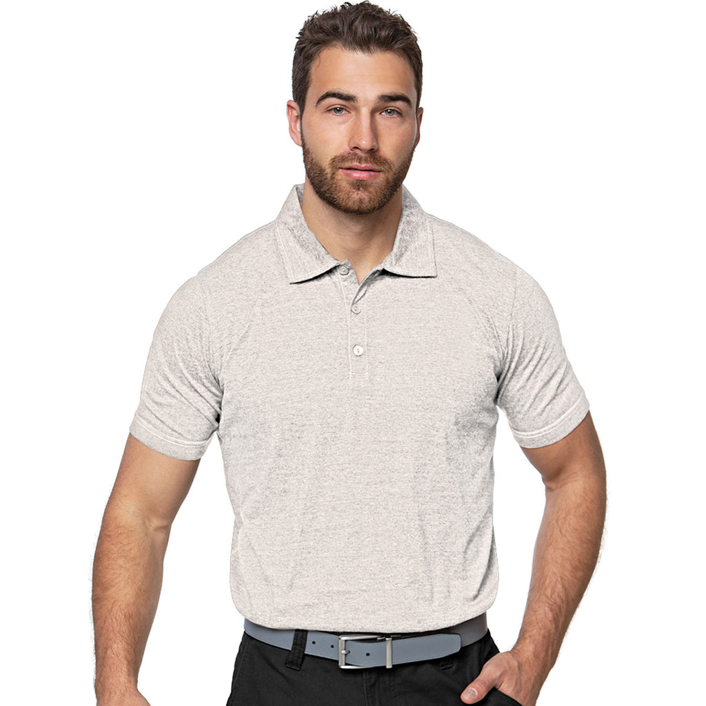 Antigua Men's Oatmeal Heather/White Peak Polo
