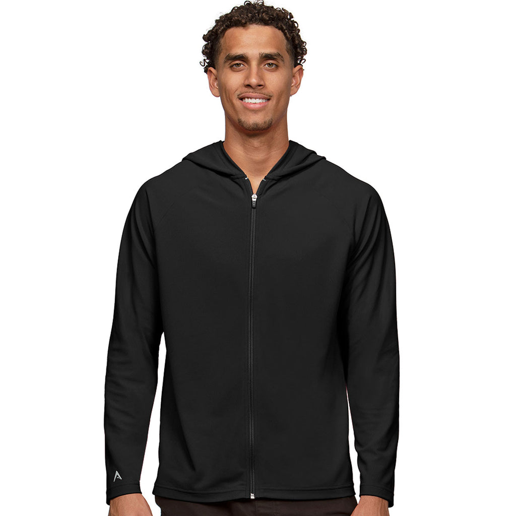 The custom logo Antigua Men's Black Full Zip Hood will keep your gift recipient comfortable in style. With your embroidery company logo added to the product, you have the perfect employee gift to hand out to team members at your company.