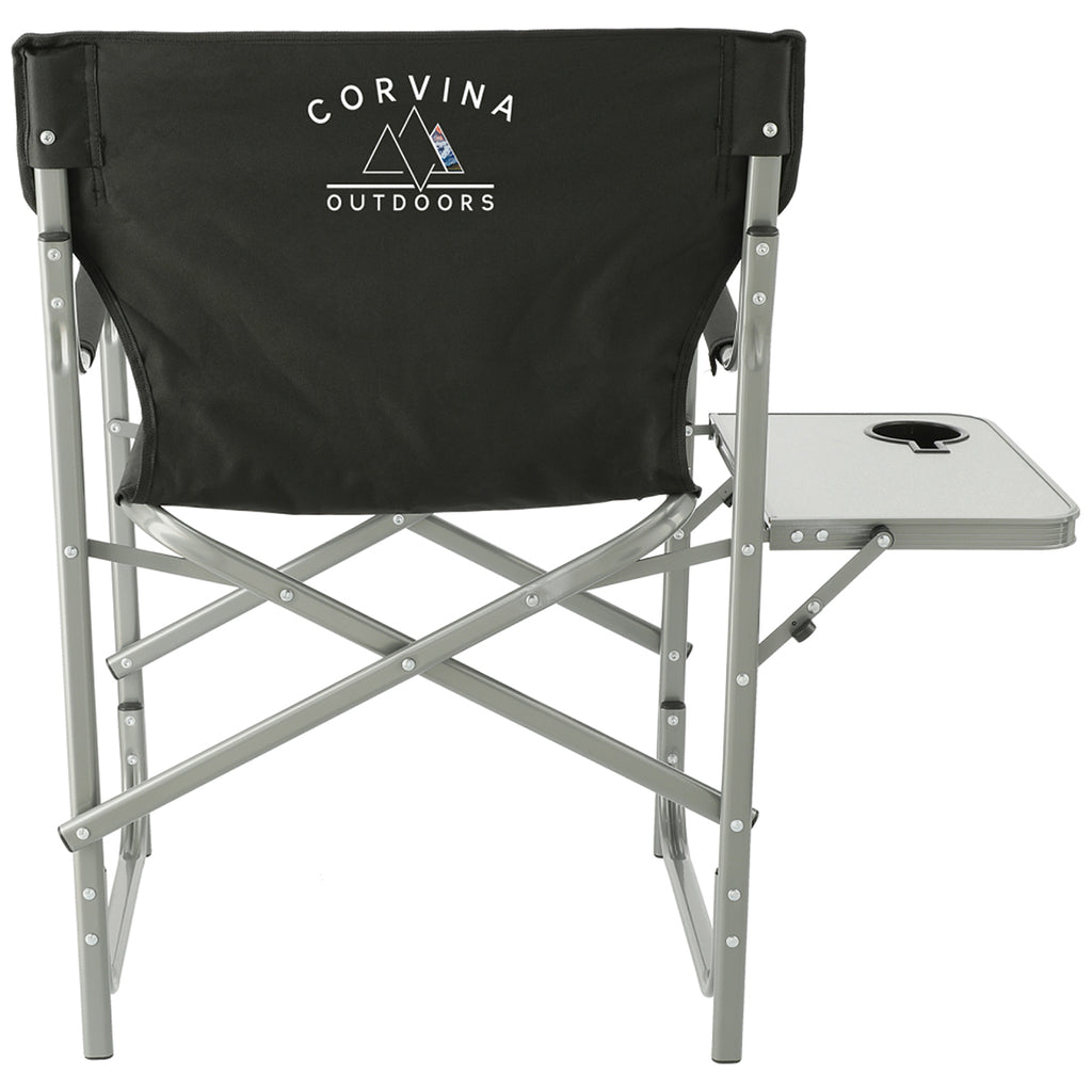The Leeds Black Director's Chair (300lb Capacity) with Side Table is an outdoor accessory that will ensure your company's custom logo or design is highly visible at any picnic, tailgate, or outdoor party. It folds down flat for easy storage and comes complete with a convenient extendable 15" x 10" side table when in use.The minimum order for this item is 12 pieces.