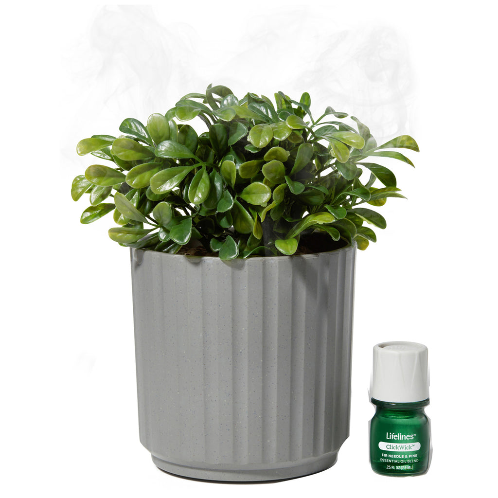 Lifelines Ribbed Grey Boxwood Plant Diffuser offers a custom look for your home or office without the work. This faux boxwood plant is also a diffuser that is simple to use with the unique ClickWick design that quickly fills your room with the soft aroma of essential oils. Perfect as a gift for the holidays, as a housewarming present, or for a special occasion.
