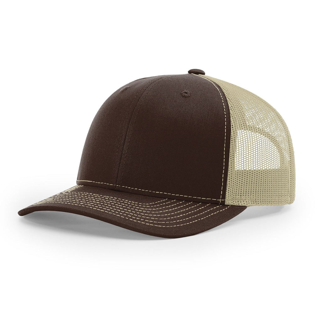 Headwear that is made for comfort is found in the custom Richardson Brown/Khaki R-Flex Adjustable Trucker Cap. This mid-pro cap is made of pro mesh polyester with pre-curved visor for all day wear that looks and feels great, the comfort stretch sweatband combines with the mesh back to keep you cooler whether working behind a counter or out on the farm. Add a company logo to promote your business whether fast food, sporting equipment, or just about anything else. The R-Flex adjustable band allows for a one size fits most design.The minimum order for this product is 48 pieces.