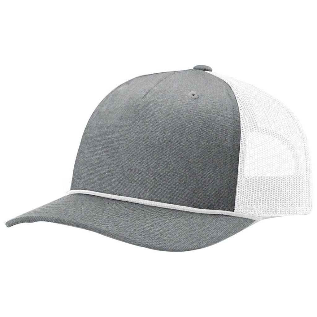 Richardson Heather Grey/White/White Split Five Panel Trucker Hat with Rope