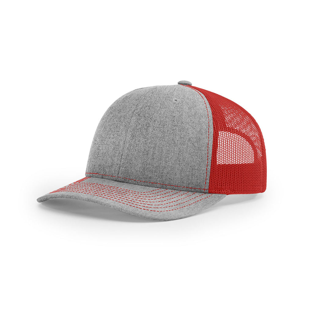 Richardson Heather Grey/Red Mesh Back Split Trucker Hat