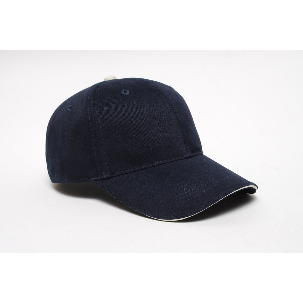 Pacific Headwear Navy/Khaki Velcro Adjustable Brushed Twill Cap With Sandwich Visor