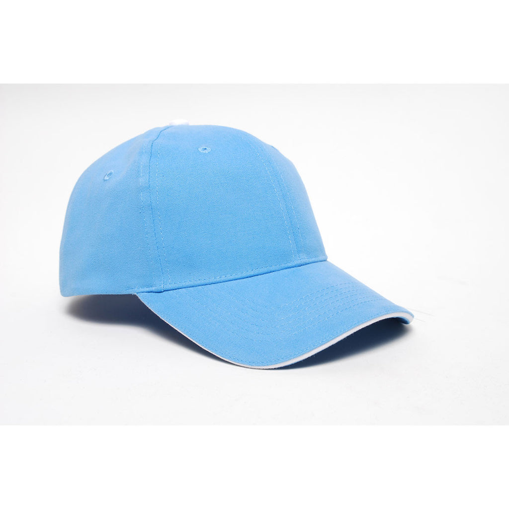 "Take me out to the ball game" just got fashionable, with the introduction of the logoed Pacific Headwear Columbia Blue/White Velcro Adjustable Brushed Twill Cap With Sandwich Visor. The stylish versatile headwear presents a proprietary "All Sport" profile that keeps you focused for corporate sponsored softball league games. Adjust the sandwich visor cap to produce the optimal fit for every type of sporting event. Enjoy the supreme softness of the 100% brushed cotton fabric that endures the stress of frequent use. Add a custom logo that potential customers immediately recognize as your company emblem. Corporate logoed apparel sells your customer first image in the community.Highlights