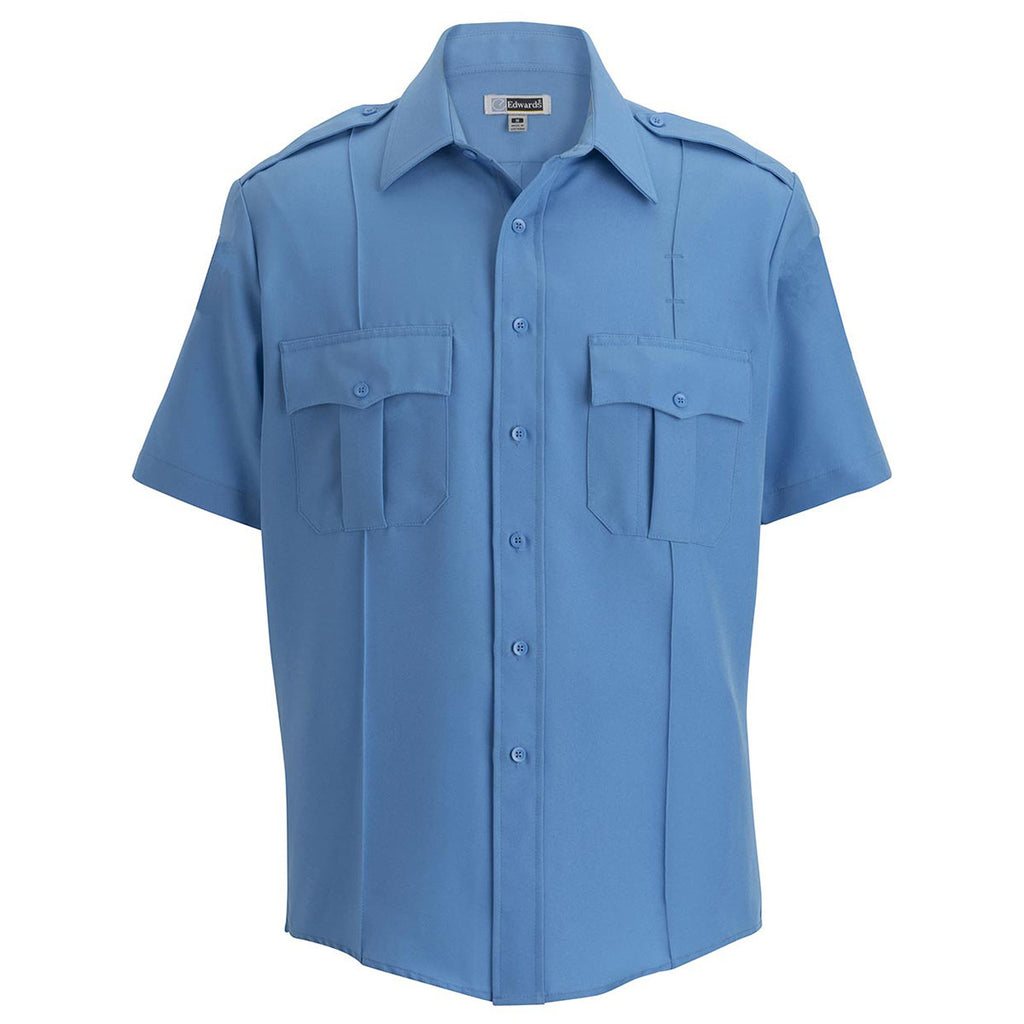 Edwards Medium Blue Unisex Security Shirt with corporate logo will ensure your security detail is easily recognized. The straightforward short-sleeve button down with dual chest pockets and badge tab is ideal for those working at concerts, special events, or even directing traffic. Place an order before your next event.