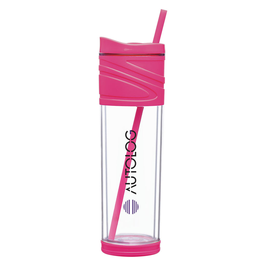 This sporty ETS Fuchsia Melrose Acrylic Tumbler 16 oz set keeps drinks cooler or hotter for long thanks to its double-wall insulation. Accented with a patterned band, this 16oz tumbler has a push-on dual-purpose lid and comes with matching straw. Featuring your company logo it will make a great promotional merchandise.