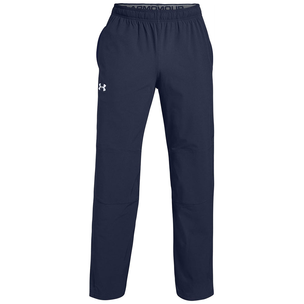 Under Armour Men's Midnight Navy Hockey Warm Up Pant is bound to make a lasting impression with embroidery of your custom logo, company name or corporate message. The elements don't stand a chance against UA's latest tech in these pants thanks to UA Storm technology. Designed with 4-way stretch construction which easily allows for full range of movement. Its stretch-woven fabric is durable but lightweight and movement-friendly. Designed with an encased elastic waistband and internal drawcord for a custom, stay-put fit. Extra knee support for enhanced durability where needed. Add this no-brainer custom embroidered men's pant to your team's dress code, sports event uniform, and more.Highlights