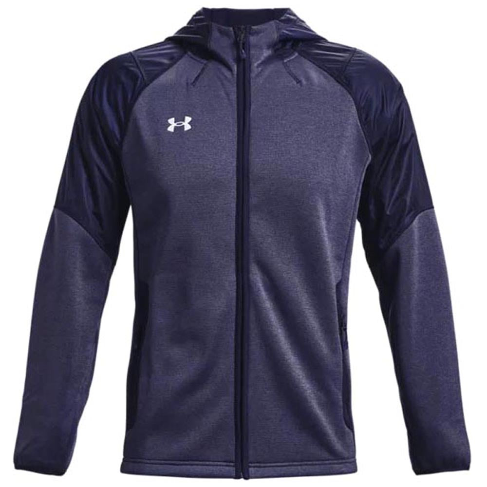 Choose your custom embroidery for the Under Armour Men's Midnight Navy Swacket Team for a look that will turn heads. This loose fitting, full front zip jacket is a must have as part of warm-up gear as it can easily be worn over uniforms or other clothing as desired. Add a custom logo to show team affiliation or a player number to show support during big events. The long sleeve hooded swacket has zippered side pockets for small items like your phone and keys so they are secure as you go about your work or play. Great for daily wear or to bring out for special events. Place your order today to give as gifts or sale in your shop.Highlights