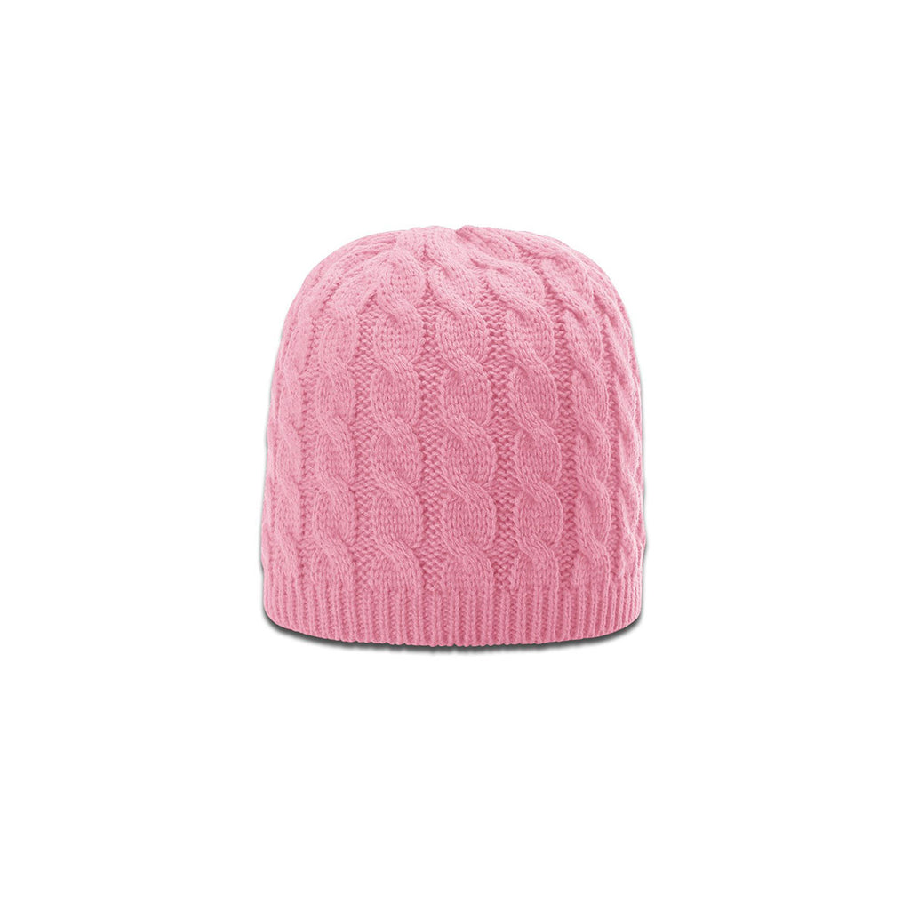 Embrace the cold with this Richardson Pink Cable Knit Beanie featuring soft and cozy construction. A classic cable-knit texture injects chalet-chic style into this toasty beanie. This Richardson Pink Cable Knit Beanie lets you customize it with your logo or brand name tag or label. Team it up with other wintry swag giveaways for maximum brand recognition.The minimum order for this product is 48 pieces.
