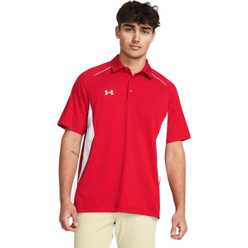 Under Armour Men's Red/White Title Polo with corporate or custom embroidery creates a classic, high-end look that can serve as a uniform or golf shirt that all can love. The short-sleeved polo is sleek and versatile for daily wear as needed. Easily pair with a jacket, wear alone, or layer.