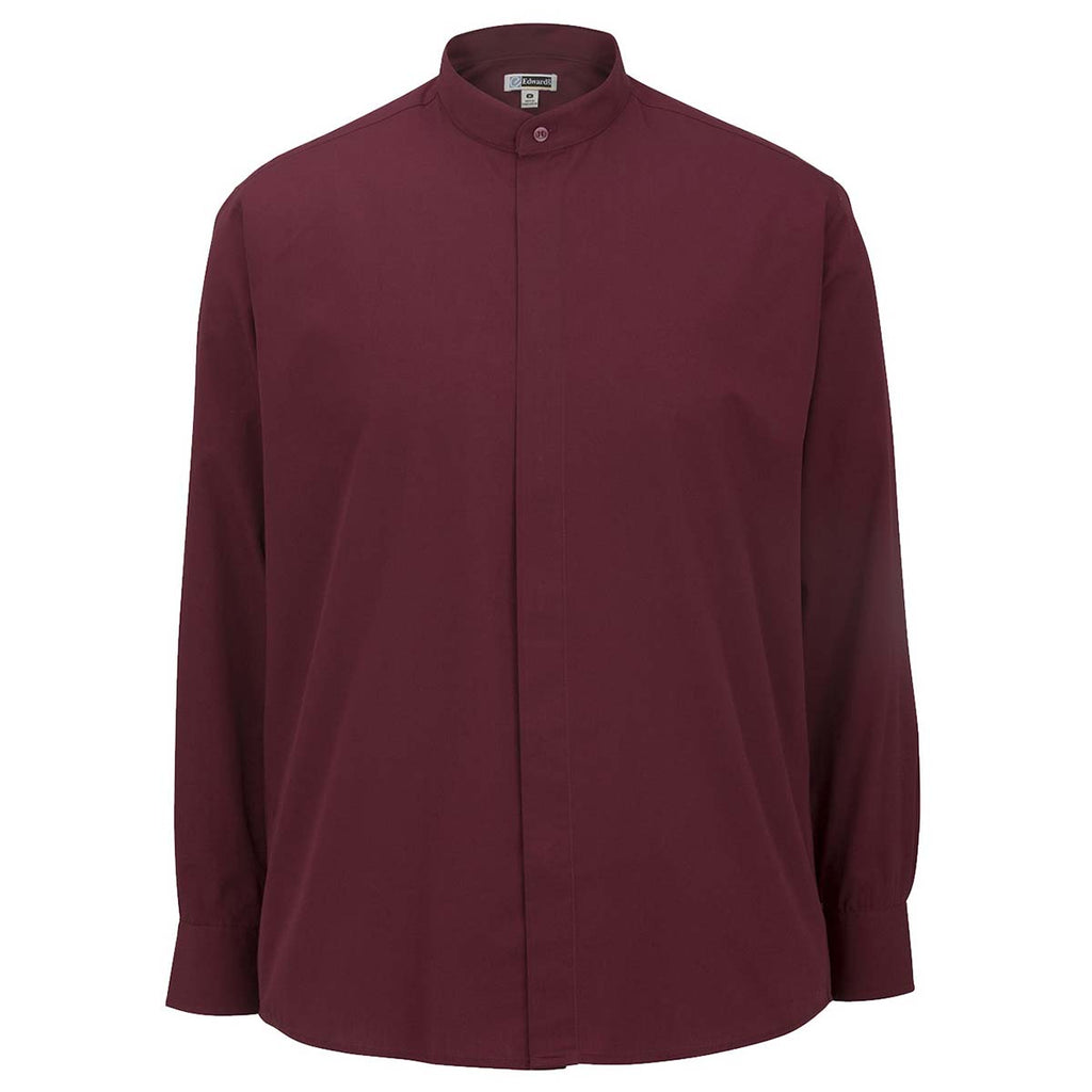 Let this custom shirt work as hard as you do. The Edwards Men's Burgundy Banded Collar Shirt is soft, colorful, and perfect to carry your custom logo in the embroidery of your choice. Ideal wear for restaurants, caterers, and coffee shops these embroidered shirts make for great employee apparel or even hospitality apparel. Add your company logo to make sure your employees are easily recognized and your brand showcased on these long sleeve shirts with adjustable cuffs that are easily machine washable. Choose your color and design to create a look that everyone will want to mimic.Highlights