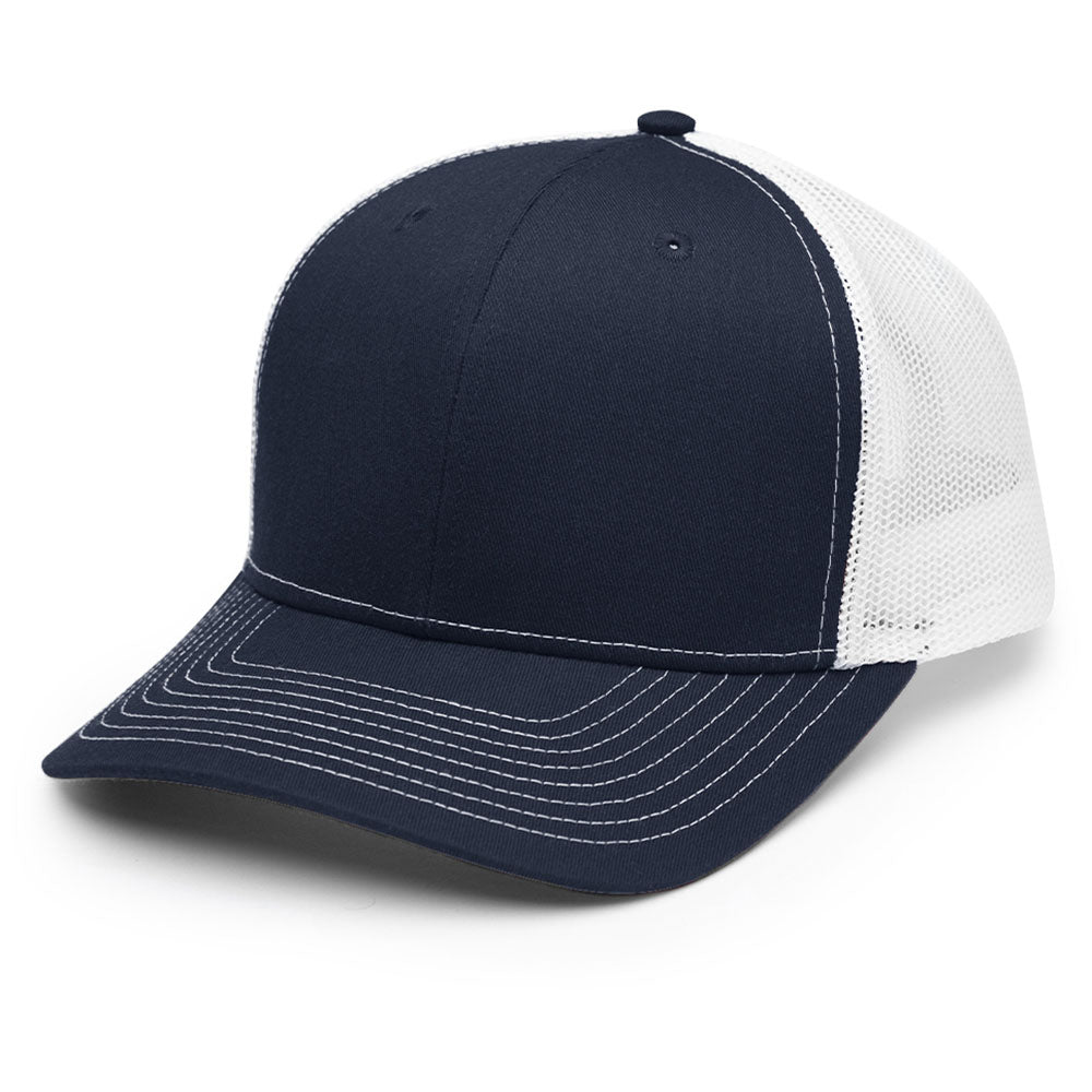 Complete your look with a custom Hit Navy with White Mesh The Hauler Classic Trucker cap. This iconic style cap is a crowd favorite with a 6-panel, medium profile with mesh on the back and a cotton sweatband. An adjustable plastic snap closure means this is a one-size-fits-most design that the majority can enjoy. Perfect for daily wear at work or play.