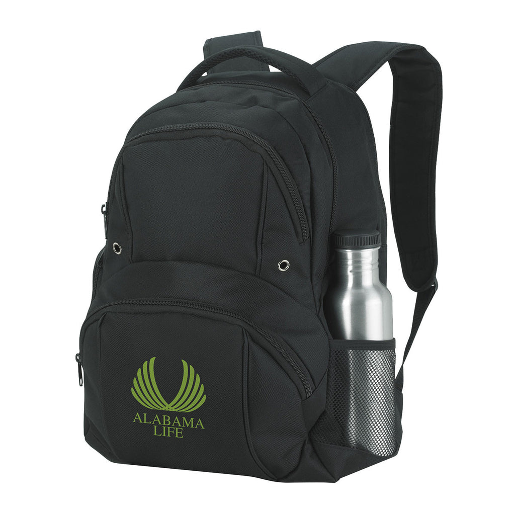 Whenever you travel for business, you need a piece of luggage that passes the durability test with flying colors. This is why the Good Value Black Business Backpack makes sense for busy professionals on the go. The front main zippered pocket includes an organizer panel that stores laptop accessories and travel itineraries. Mesh side pockets give you instant access to your favorite beverage. Adjust the thick padded shoulder straps to balance heavy loads on your back and shoulders. The rugged backpack doubles as a storage unit for avid outdoor enthusiasts camping out for the weekend. Attach your corporate logo to reach more customer prospects in the community.