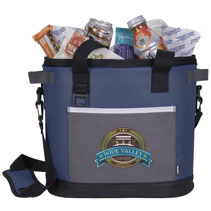 The Koozie Grey/Navy Sport 20-Can Kooler with custom logo is the perfect choice when you're out on a corporate picnic, having lunch after a company team-building exercise outdoors or just as part of a new employee welcome package. Print your company logo on it to maximize its cool factor!