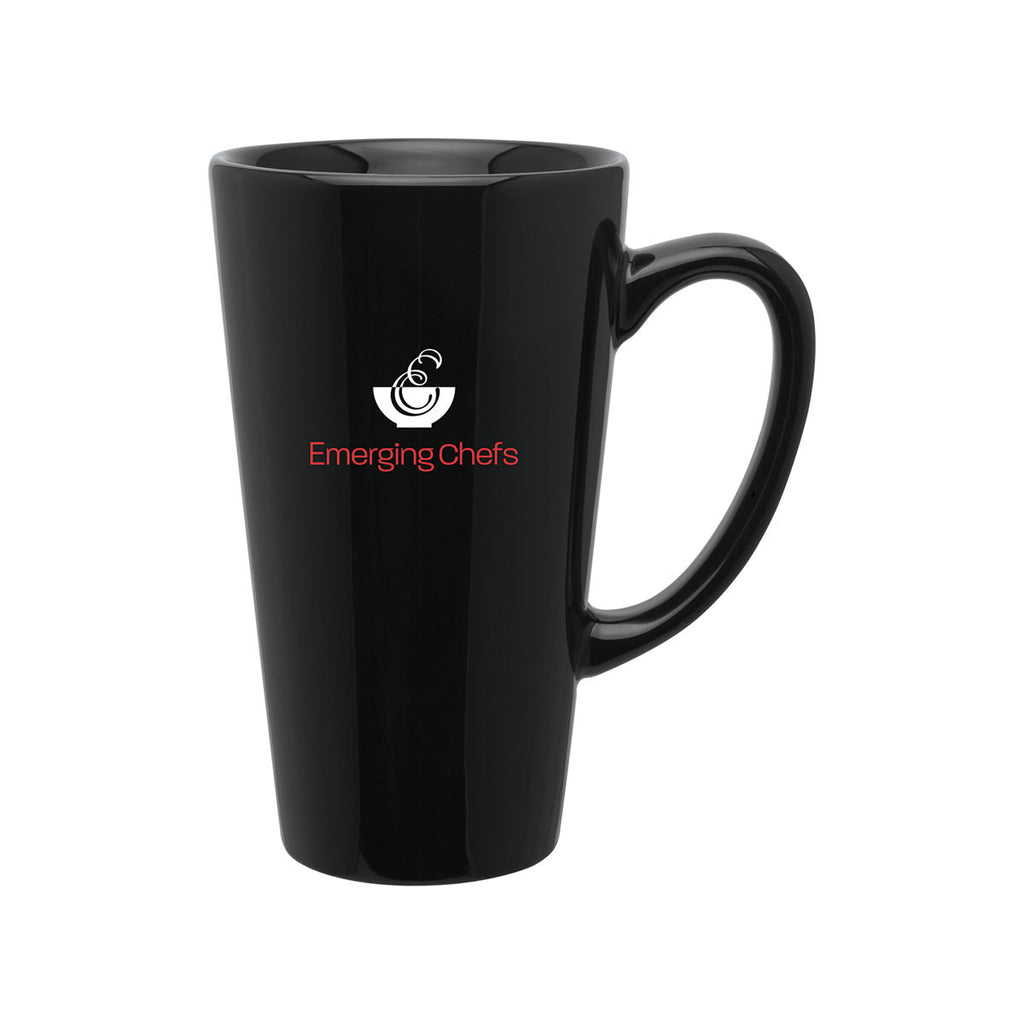 Dress up your promotional merchandise in fine style with this ETS Black Tall Latte Ceramic Mug 16 oz. It has a glossy interior and exterior finish that will make your logo imprint stand out. Made extra tall to hold even more of your favorite drinks when you delve into office work for prolonged hours.