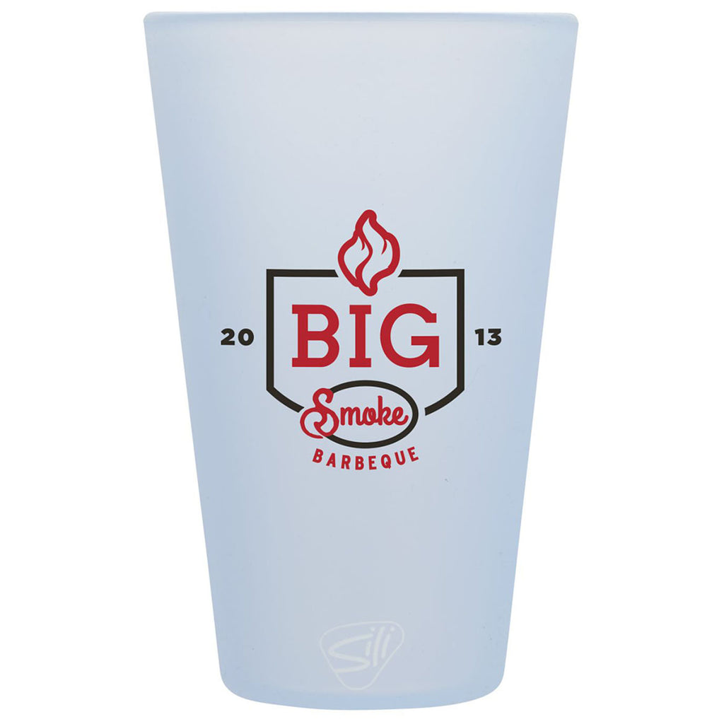 Meet the ultra-durable Silipint Clear Original Silicone Pint Glass 16oz. It is made with 100% food-grade FSA-approved platinum-cured silicone. It is free of BPA, BPS, and phthalates. Silipints will not break, crack, chip, dent, fade, or scratch. It is sized as a true American pint size. Silipint is thick and sturdy, yet squeezable walls and a grippy outer surface for extra safety. Avoid spills with the insane no-slip base. Place a custom-printed cup that is durable, eco-friendly & will never wear out.