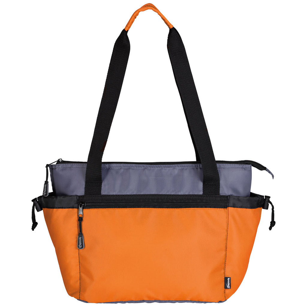 Make your day easier with a custom Koozie Orange Kamp Kooler Tote. This versatile tote is great for day trips, camping trips, long car rides, and packing extra snacks for the office. Add a company logo to offer these as employee gifts or as a way to create a new employee welcome package full of fun items and snack foods. Try out a custom logo to show support for a favorite team or organization as you attend games or family events. The large zippered main compartment with a heat sealed PEVA liner that keeps food warm or, with an ice pack, cool for a few hours. A front zippered pocket and side water bottle pockets with drawstring closure add to the available storage space. Order yours today.