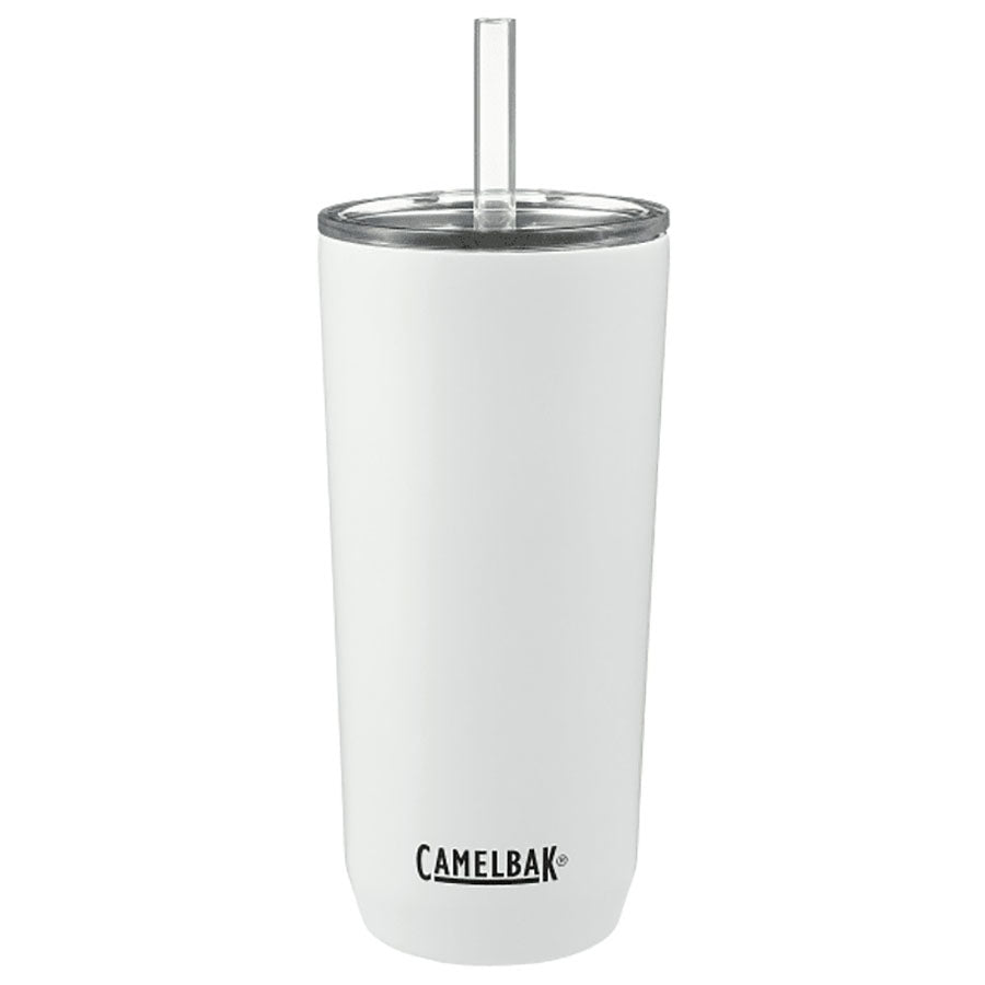 Enhance your beverage experience with the 48-Hour CamelBak White Straw Tumbler 20oz, boasting a sleek and angular design that is both visually striking and ergonomically comfortable. Featuring double-wall vacuum construction with copper insulation, this tumbler excels in temperature retention, keeping drinks hot for up to 8 hours and cold for up to 24 hours. Its advanced construction also prevents condensation, ensuring a sweat-free exterior.