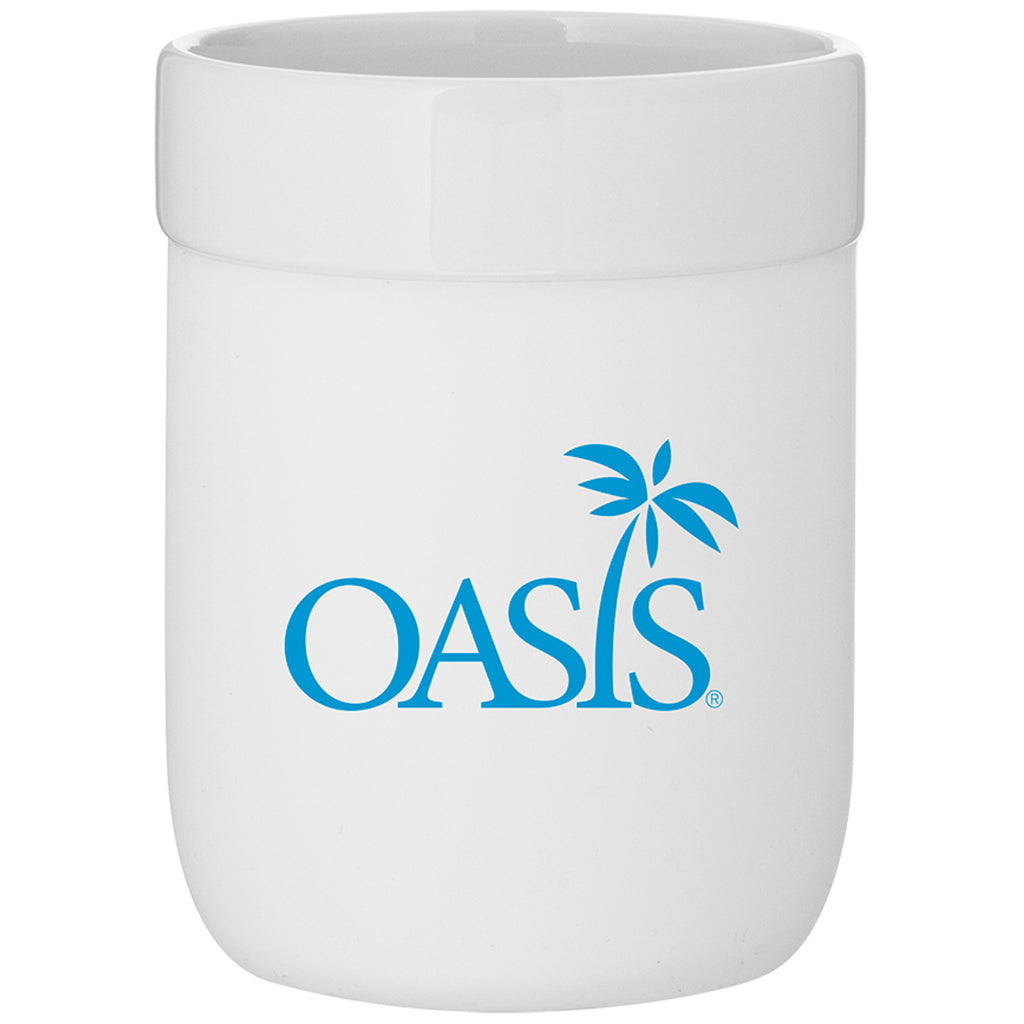 The printed ETS White Opal Stoneware 12 oz Cup is a fun and creative way to enjoy a drink after work or with friends. The glossy color cup with silicone sleeves is ideal for a chilled glass of wine or your other favorite drink after work or on the weekends. Add a custom logo to use these as an event giveaway or employee appreciation gift that can be enjoyed during their down time. Great for recruiting events to draw people to your stand or booth, these cups are fun to use and easy to enjoy. Place an order today to make sure you do not miss out on these cups for whatever need you may have.The minimum order for this product is 48 pieces.
