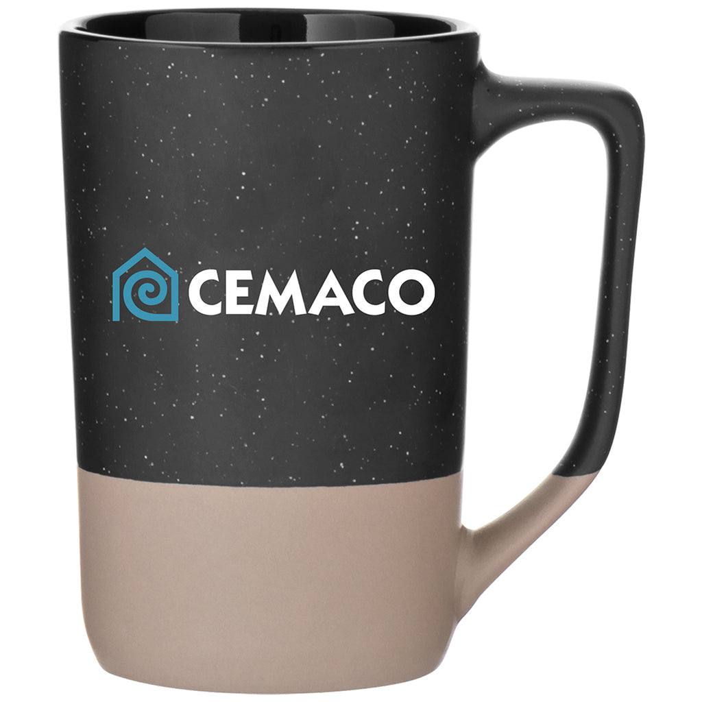 Keep your cup full with a custom printed ETS Matte Black Damon 17 oz Mug. The simple design of this oversized mug will allow your logo to be the star on the matte color or glazed main section and glazed base with speckles. Add a company logo to use as a customer giveaway that will become a daily use item or add to a new employee welcome gift to let them know they matter. Great for long days at the office or chilly winter mornings when the warmth of your coffee or tea is just what is needed. Place an order today before you miss out.The minimum order for this product is 72 pieces.