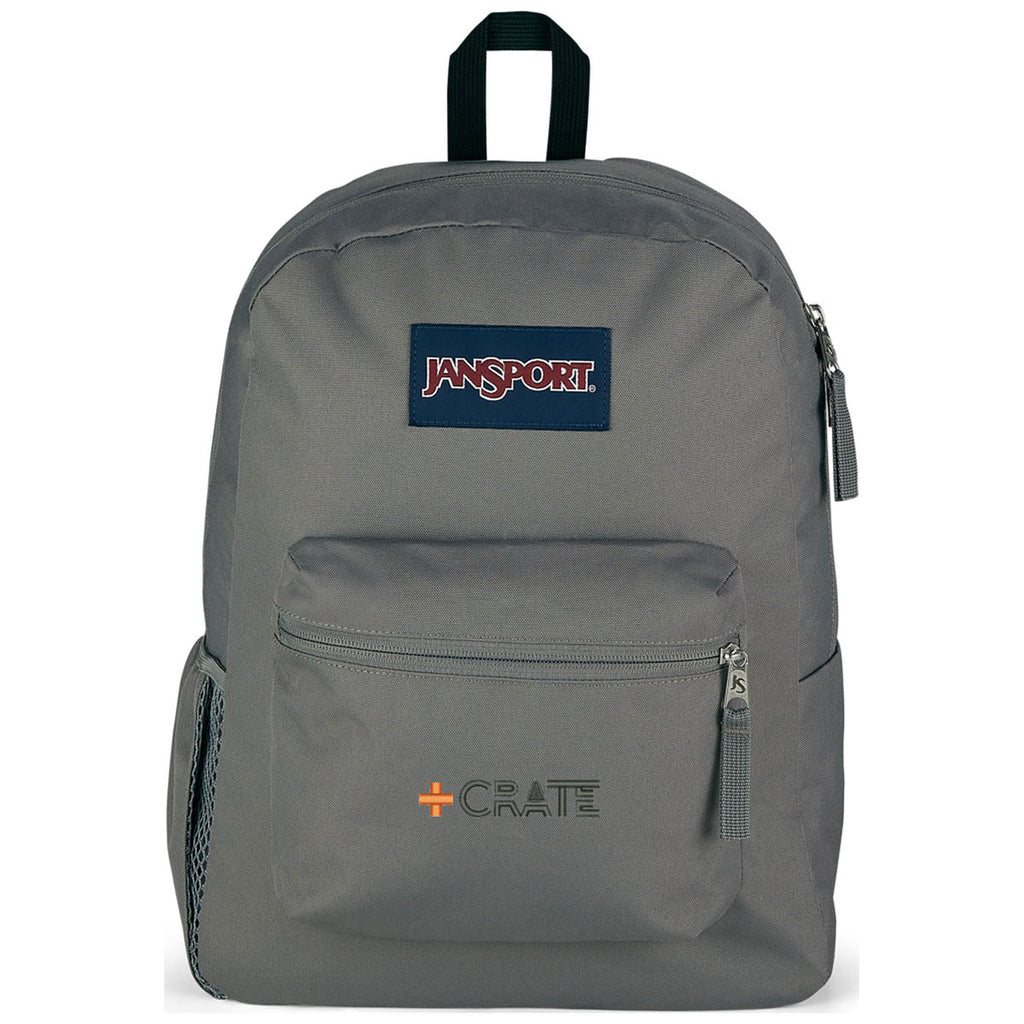 Whether printed or heat transfer a company logo would be sure to get noticed on this JanSport Crosstown 15" Computer Backpack.Great for an event giveaway or employee gift this durable backpack has a large main compartment with a built-in organizer. It also has a haul loop for carrying and a side water bottle pocket.