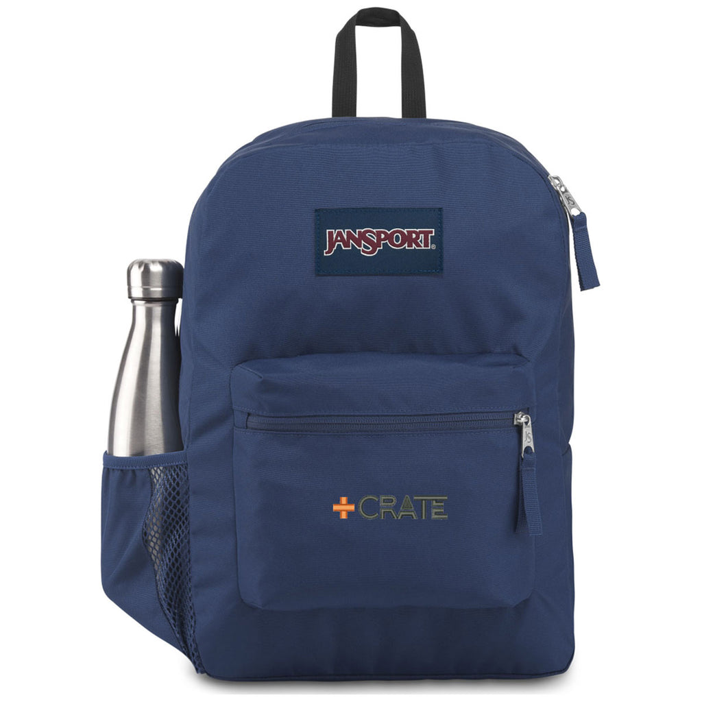 Whether printed or heat transfer a company logo would be sure to get noticed on this JanSport Crosstown 15" Computer Backpack. Great for an event giveaway or employee gift this durable backpack has a large main compartment with a built-in organizer. It also has a haul loop for carrying and a side water bottle pocket.