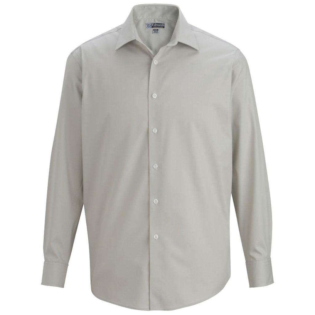 Design a company logo for the Edwards Men's Silver Pinpoint Oxford for a look that is professional and fashionable. Ideal for corporate apparel in and out of the office, this lightly striped long-sleeve shirt is a must have in a professional setting. Wear alone as a uniform or pair with a suit to create a custom look that will give clients faith you are doing your best. The wrinkle free fabric is lightweight with a tailored fit and point collar with sewn in stays. The French placket completes the look that can be dressed up or down as needed. Try a custom logo to add to your high-end logoed apparel line or give as a custom gift that will be a welcome addition to any wardrobe.Highlights