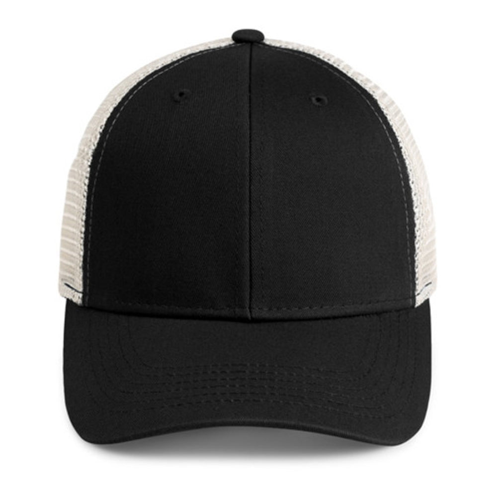 - Garment washed cotton twill front and ultra-soft polyester mesh back