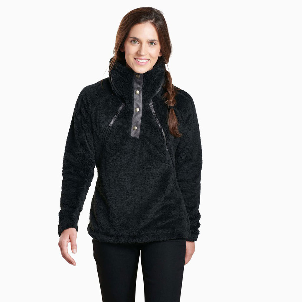 Wrap yourself in comfort with a custom KUHL Women's Black Flight Pullover in several color variations. Made of 100% polyester, this lavishly soft pullover is perfect for chilly morning commutes or can be custom embroidered to use as employee apparel. The stow away hood zips easily into the collar and four zippered pockets offer plenty of storage for phone, keys, and small necessities. Enjoy a bit of fashion flair with the ALT leather trim, vintage micro suede accents, and depth and color from core dying. Your company logo will stand out whether these are given as gifts or are used as part of a corporate uniform.Highlights