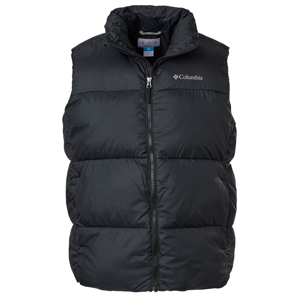 Choose your embroidery for the Columbia Men's Black Puffect Vest to stay warm as you enjoy the Great Outdoors. This insulated puffer vest is water resistant and offers a full front zip with a chin guard for added protection. The ideal option for hiking, exploring, or a weekend camping trip with friends.This product cannot ship outside of the United States.