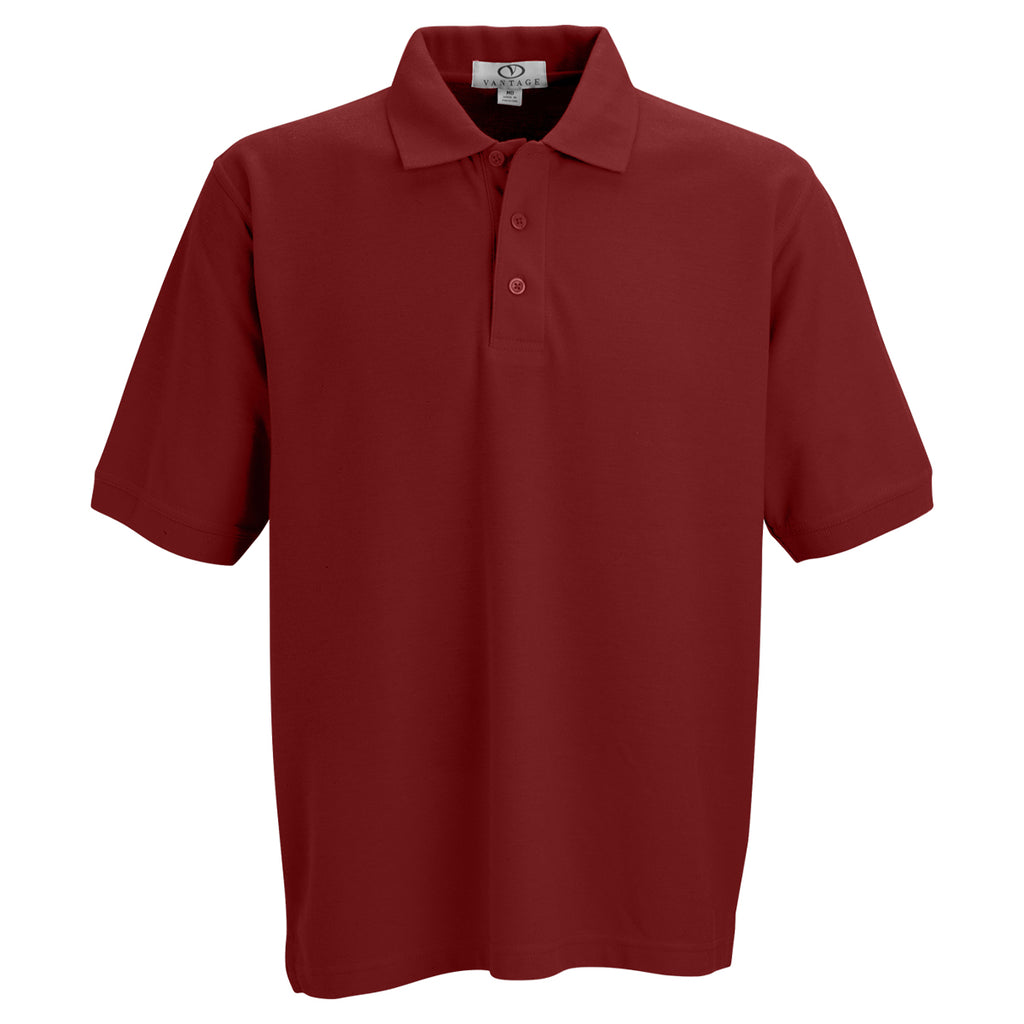 Vantage Men's Crimson Soft-Blend Double-Tuck Pique Polo