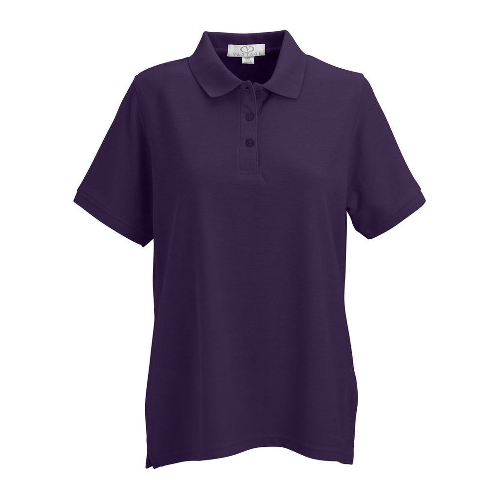 Vantage Women's Purple Soft-Blend Double-Tuck Pique Polo