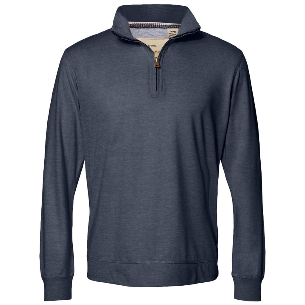 Choose your custom logo for the Weatherproof Men's Navy Vintage Microstripe Quarter-Zip Pullover. This classic fitting pullover is made of a cotton polyester microstripe jersey with a super soft sueded finish. The placket varies from tradition in this long sleeve pullover with a covered plastic zipper and metal zipper pull. Add a company logo to use this as part of employee apparel that can be worn alone or over a tee for extra comfort and convenience.Highlights