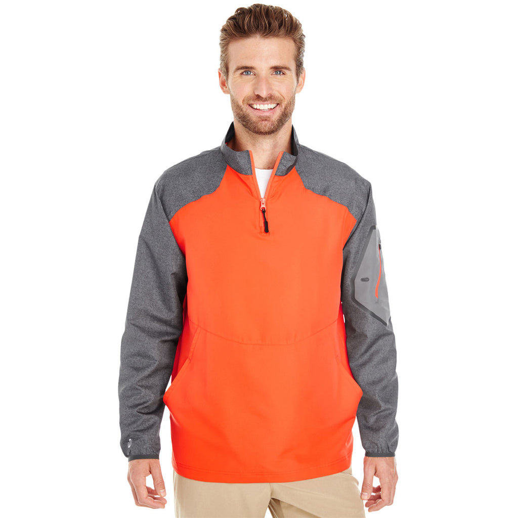 With spandex bound cuffs, the decorated Holloway Men's Carbon Print/Orange Raider Pullover provides you with increased hand and wrist mobility. Additional hand and wrist mobility allows you to tackle the most difficult outdoor home improvement projects. The sleek quarter-zip neckline and silicone welded and laser cut sleeve pocket create visual appeal that makes the jacket stand out in a crowd. Dry-Excel maze mesh inserted at the shoulder improves interior ventilation. Lightweight 100% polyester Aero-Tec fabric resists rips and tears to withstand the abuse dished out by high-energy outdoor recreational activities. Add a custom logo to generate buzz for your company.Highlights