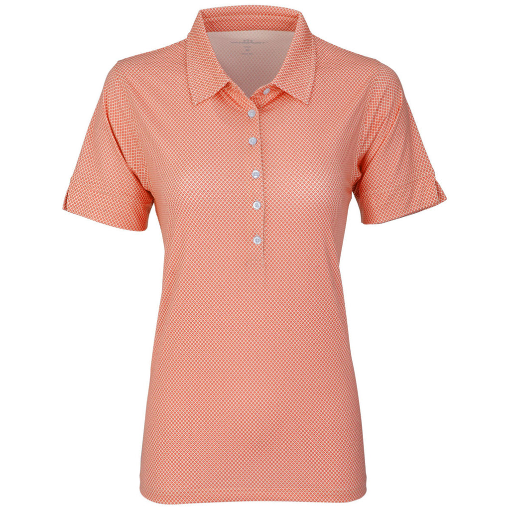 Design a custom embroidery for the Vansport Women's Orange Pro Eagle Polo to create an easy-to-wear look that is ready for the day. The short sleeve polo is lightweight, anti-microbial, and offers UV protection with an all-over diamond print. Hit the putting green, the back nine, or work in this versatile polo.Highlights