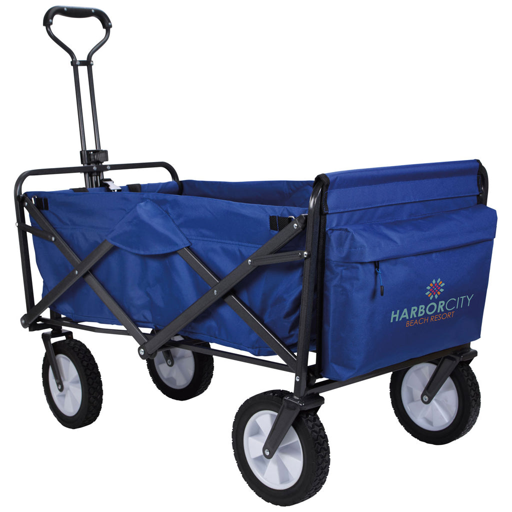 The custom Koozie Blue Collapsible Folding Wagon is a special promo gift that's sure to see a lot of use. When you add your brand name to the product, you can advertise your company with ease. This wagon is an ideal employee gift or special event giveaway gift.