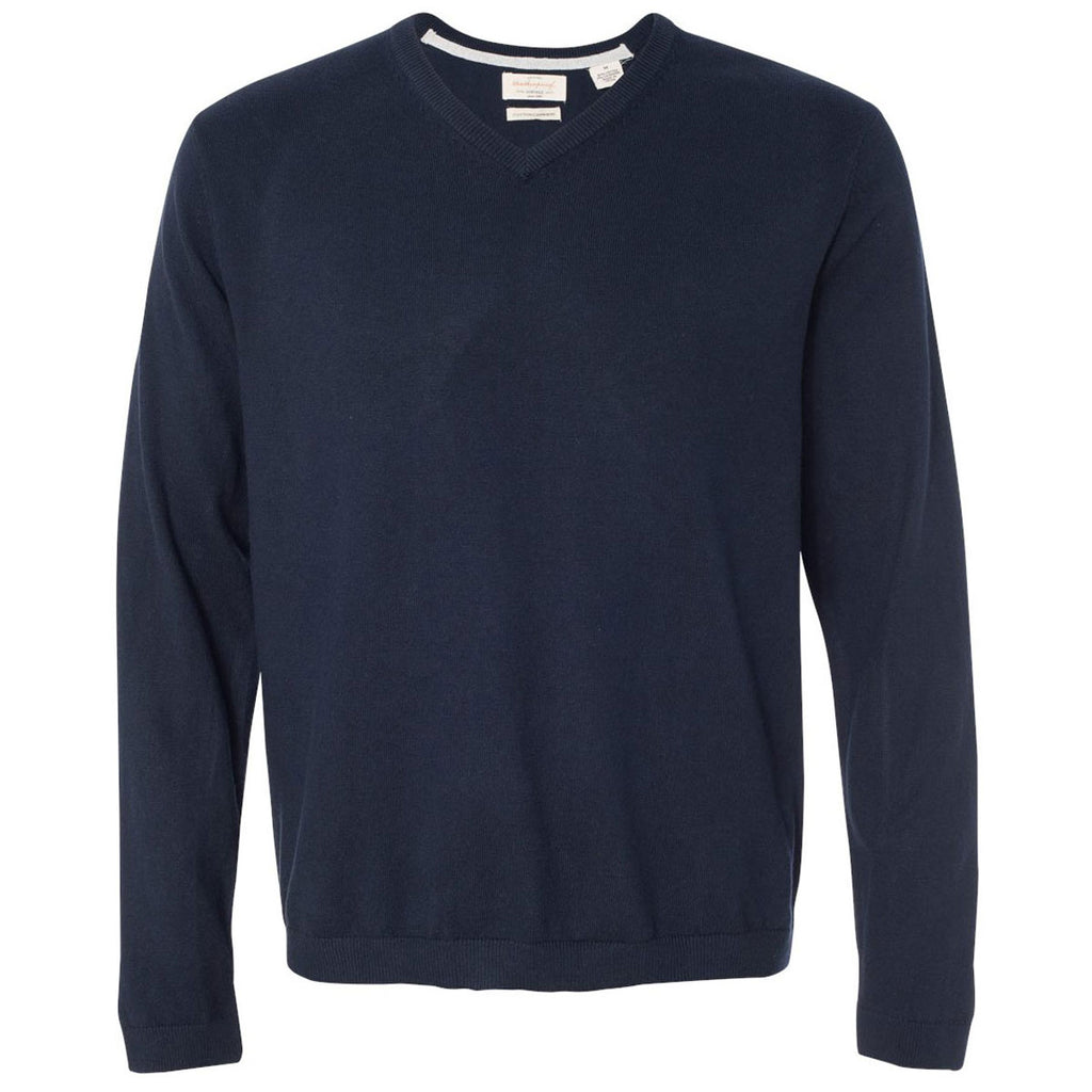 The logoed Weatherproof Men's Ink Vintage Cotton Cashmere V-Neck Sweater is the ideal clothing item to detail with your company logo. Features of this cozy and attractive men's v-neck sweater include a luxurious 95% cotton/5% cashmere blend material, fashionable v-neck style, 1x1 rib collar, cuffs and waistband, and availability in four professional colors. When you add an embroidery company logo to the front of the sweater, you have a stylish and classy corporate apparel gift to hand out to the lucky recipients. Whether buying these for your employees to express a job well done or purchasing the sweaters to hand out at upcoming recruiting events, these are sure to be appreciated by all.Highlights