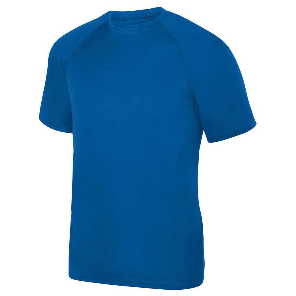 The company logo Augusta Sportswear Men's Royal Attain Wicking Short-Sleeve T-Shirt is comfort and style, all rolled into one eye-catching sports t-shirt. Available in 22 vivid colors, you can select a color scheme which makes your company screen print logo look even better. Some of the must-have features which you'll find with this men's t-shirt include a 100% polyester wicking knit fabric, True Hue technology to prevent dye migration, pad print label, self-fabric collar, and comfortable raglan sleeves. This t-shirt makes an excellent option for employee apparel for casual days or for handing out as gifts at upcoming trade shows and corporate golf events.Highlights