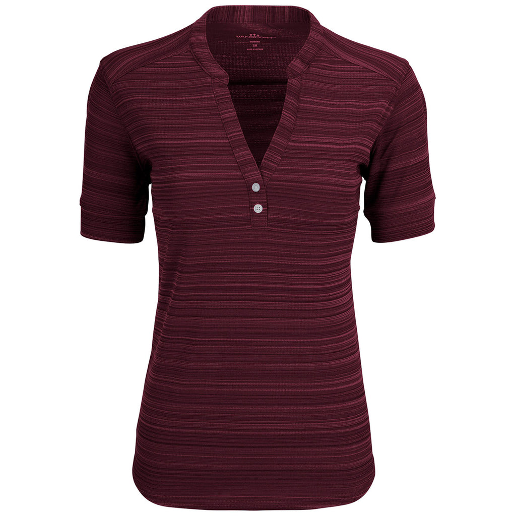 As a departure from traditionally designed polos, the embroidered Vansport Women's Deep Maroon Strata Textured Henley produces unsurpassed comfort to keep you energized all day long. Vantage takes care of the highest quality design details that include creating a Henley containing rip and tear resistant polyester. Moisture management technology ensures you enjoy long lasting cool comfort on the skin. Wear the textured Henley at the beach and when you want to make a powerful fashion statement at a corporate banquet. Add your company logo on the large imprint area to promote your brand at professional networking events.Highlights