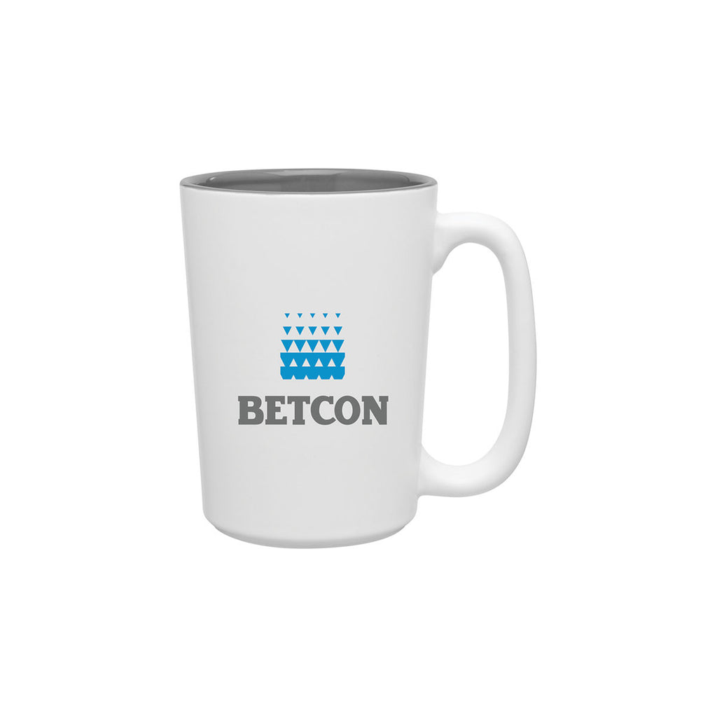 Enjoy your favorite beverage in this ETS Rocca White/Glossy Storm Grey Ceramic Mug 15 oz. It flaunts a matte white exterior and glossy interior. Add your logo imprint on it and gift the personalized mug to clients and employees to give them a hydration message and also to expose your logo to target market.