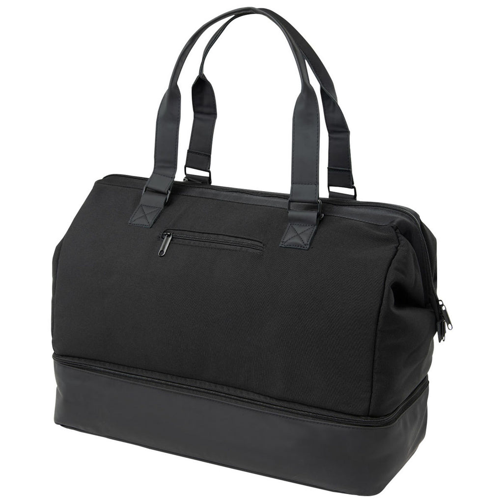 The corporate Hit Black The Weekender Travel Bag With Drop Bottom is built for travelers who need space and organization. Featuring a large main compartment and a separate drop-bottom section, it keeps belongings neatly arranged. Made with durable materials and a sleek design, it's ideal for business trips, weekend getaways, and corporate gifting, offering both style and practicality.The minimum order for this product is 12 pieces.