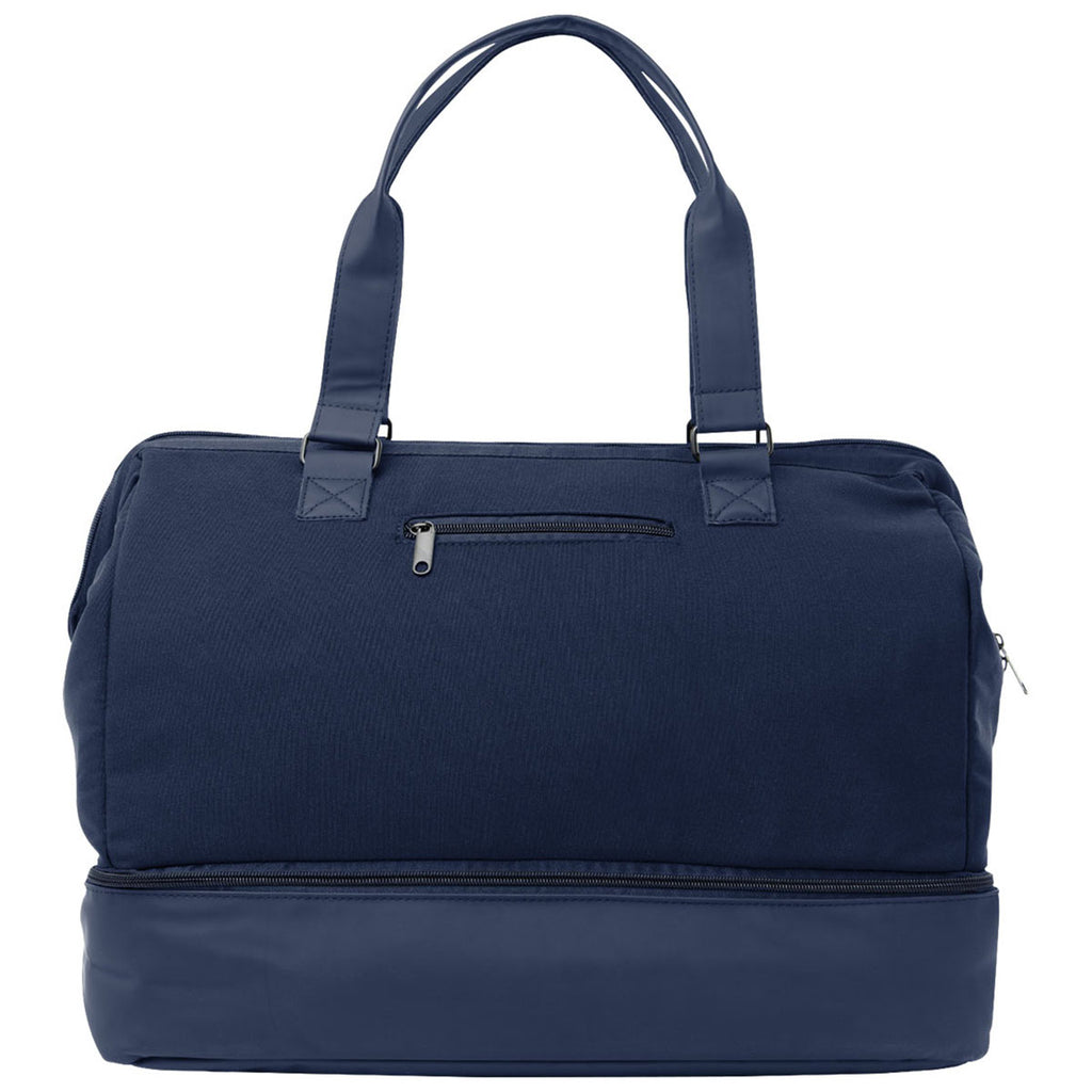 The corporate Hit Navy The Weekender Travel Bag With Drop Bottom is built for travelers who need space and organization. Featuring a large main compartment and a separate drop-bottom section, it keeps belongings neatly arranged. Made with durable materials and a sleek design, it's ideal for business trips, weekend getaways, and corporate gifting, offering both style and practicality.